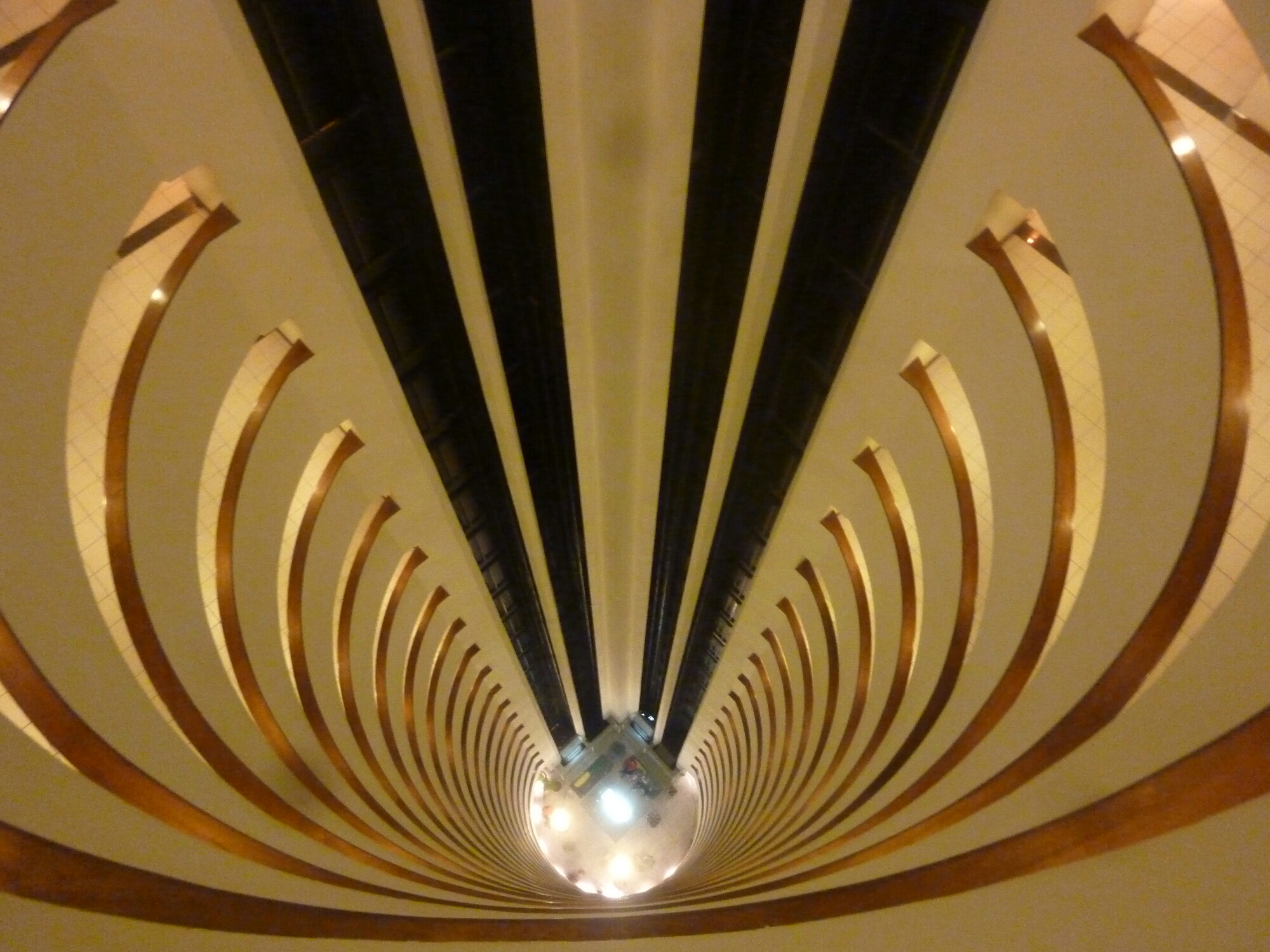 We’re staying in a beach front skyscraper with an interesting view down to the foyer.
