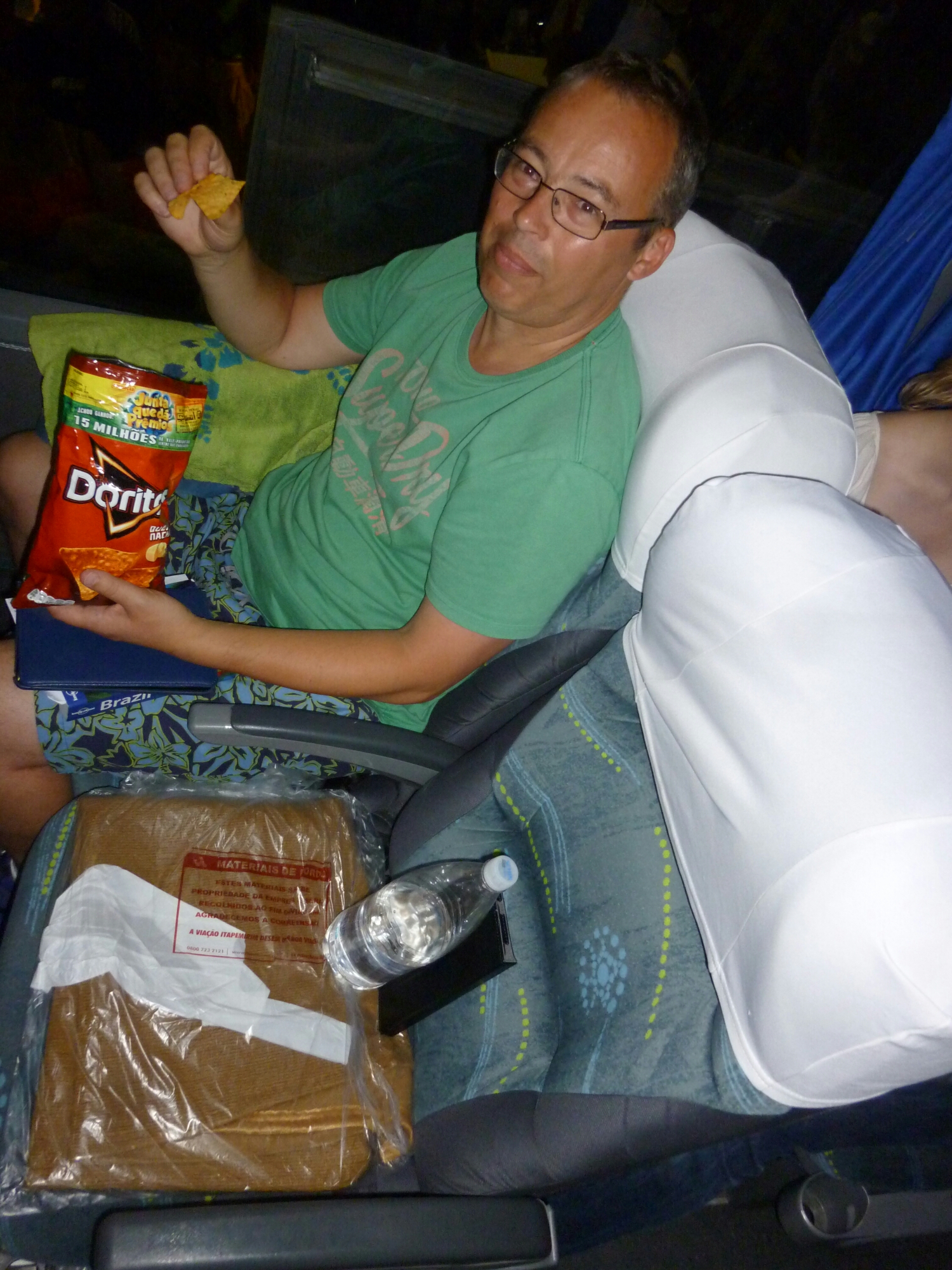 Recife to Salvador, a mere 14 hour jaunt. This time in tighter quarters. Here’s my companion for the night. Lucky me eh.